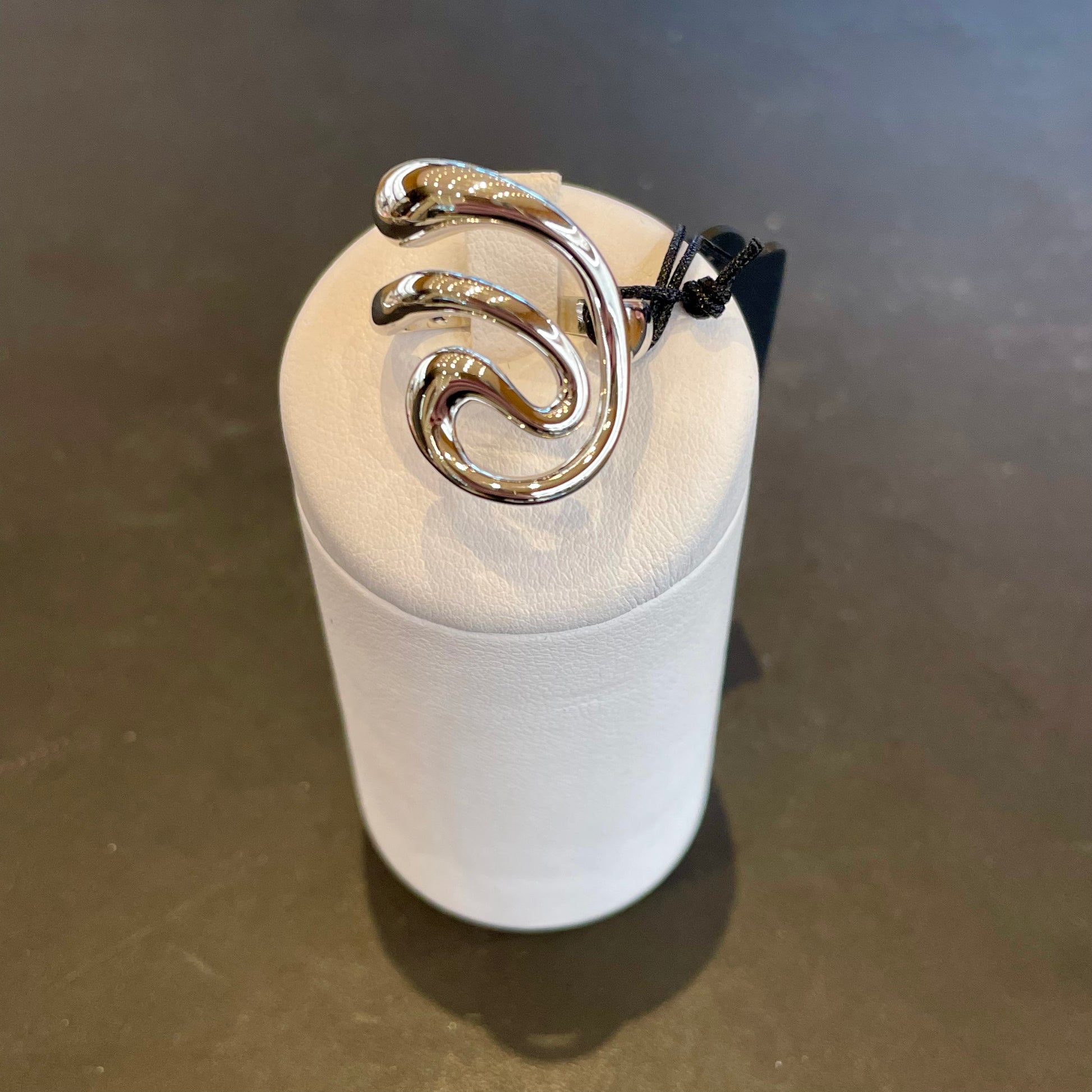 Un anello unico nel suo genere, realizzato in argento con una fantasia che richiama l’effetto di metallo fuso, come se l’argento si fosse dolcemente colato e modellato a mano. La superficie irregolare e fluida crea un gioco di luci e ombre che rende questo gioiello davvero speciale.